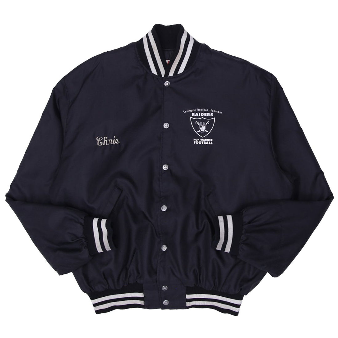 Vintage Mens Birdie Raiders Jacket Black Embroidered Football Made In USA