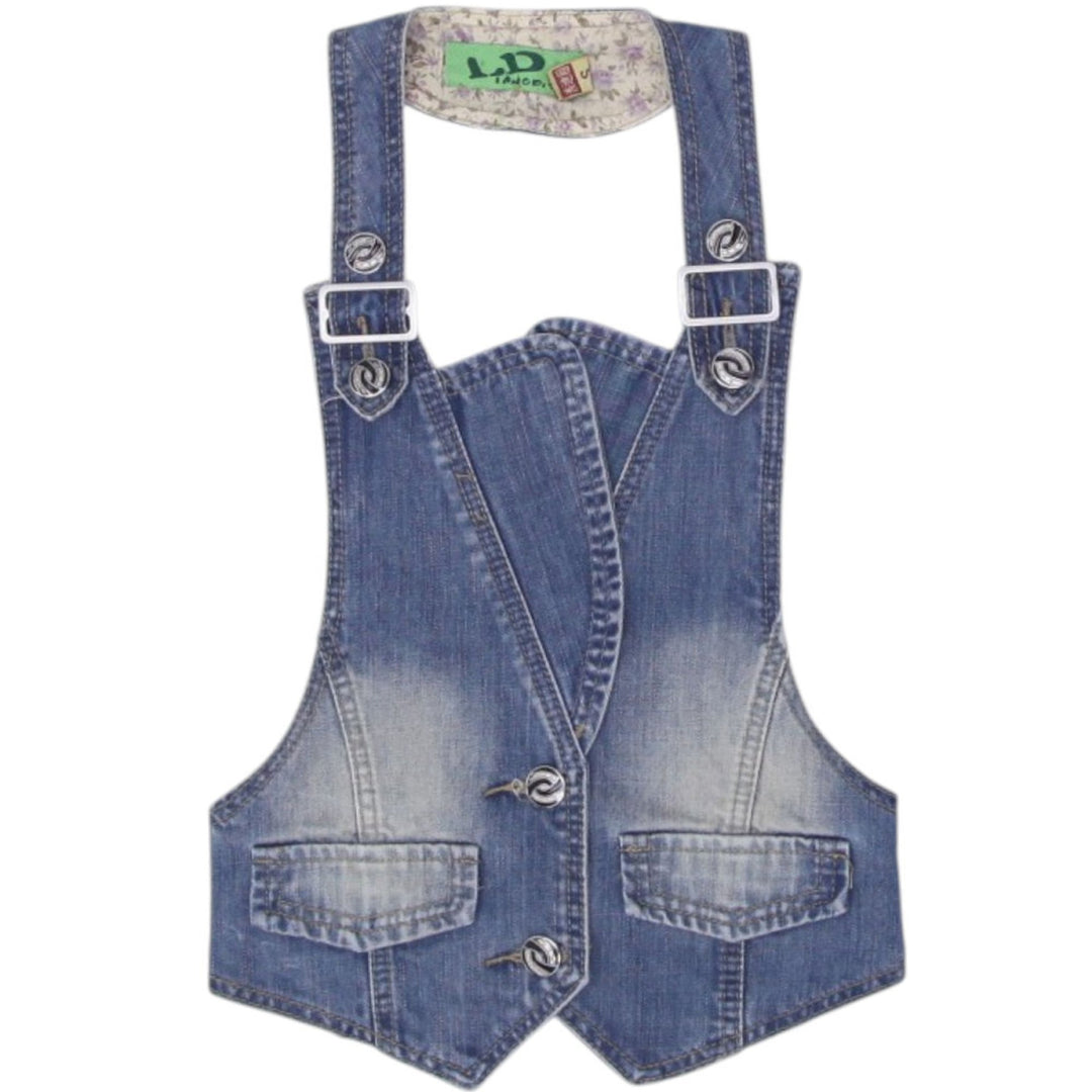 Y2K Ladies Denim Halter Blue Buckle Washed Top