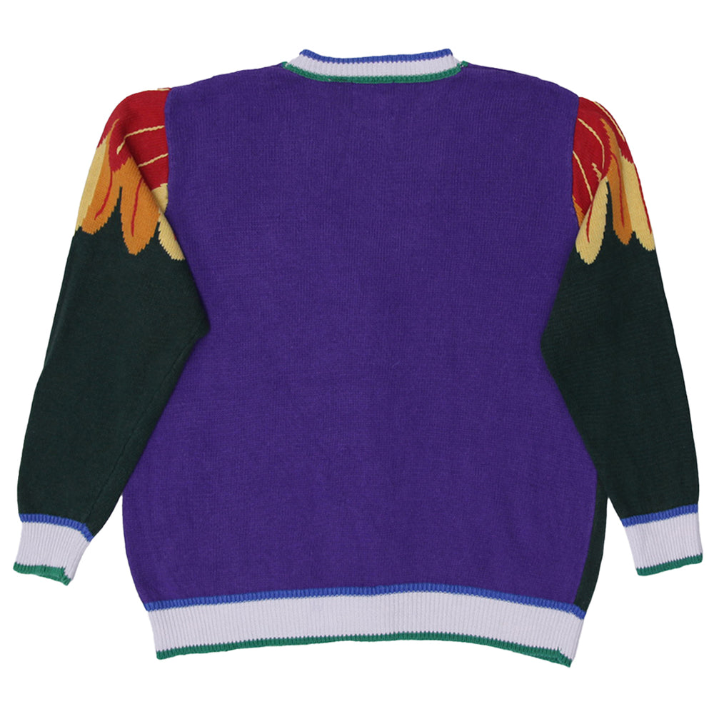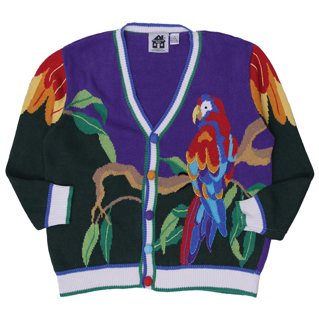 Vintage Ladies Storybook Knits Parrot Cardigan Purple Colorful Knitwear