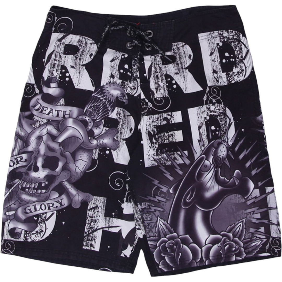 Y2K Mens MMA Elite Black Graphic Skull Board Shorts
