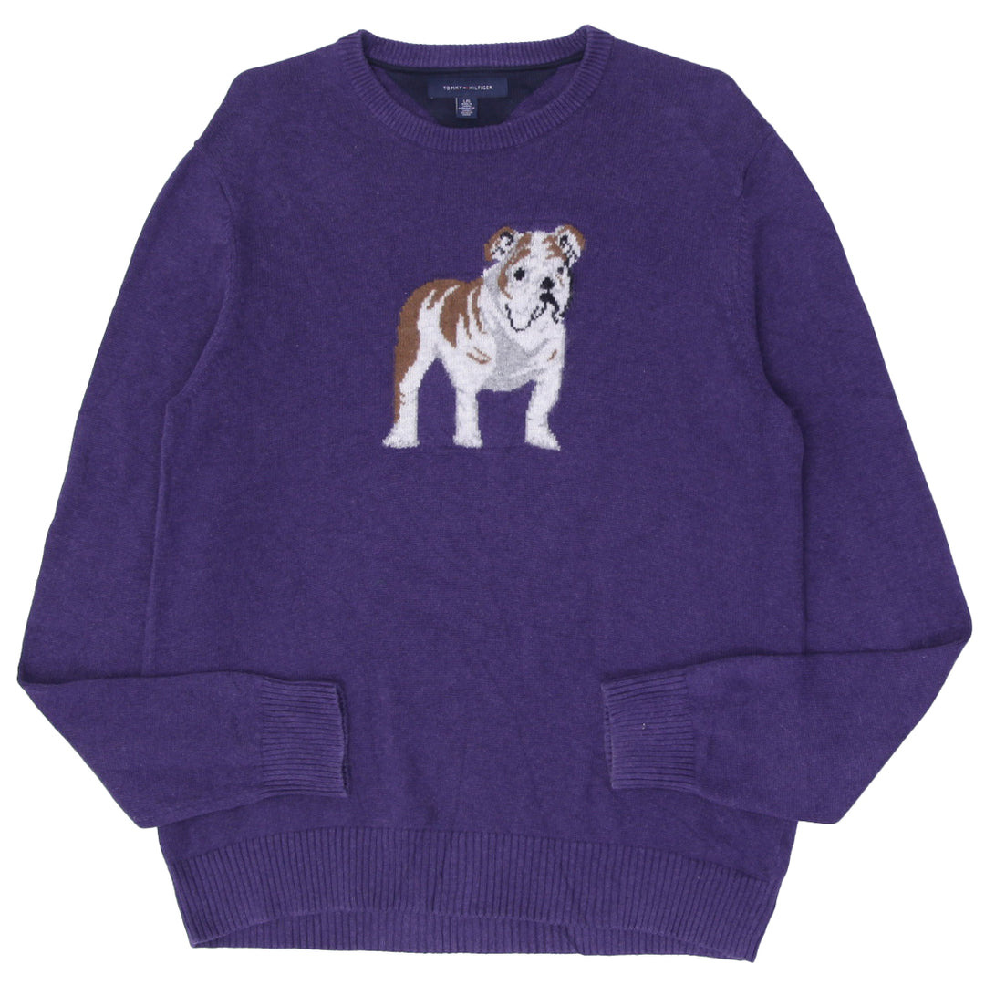 Mens Tommy Purple Bulldog Cotton Pullover Elbow Pads Crew Sweater