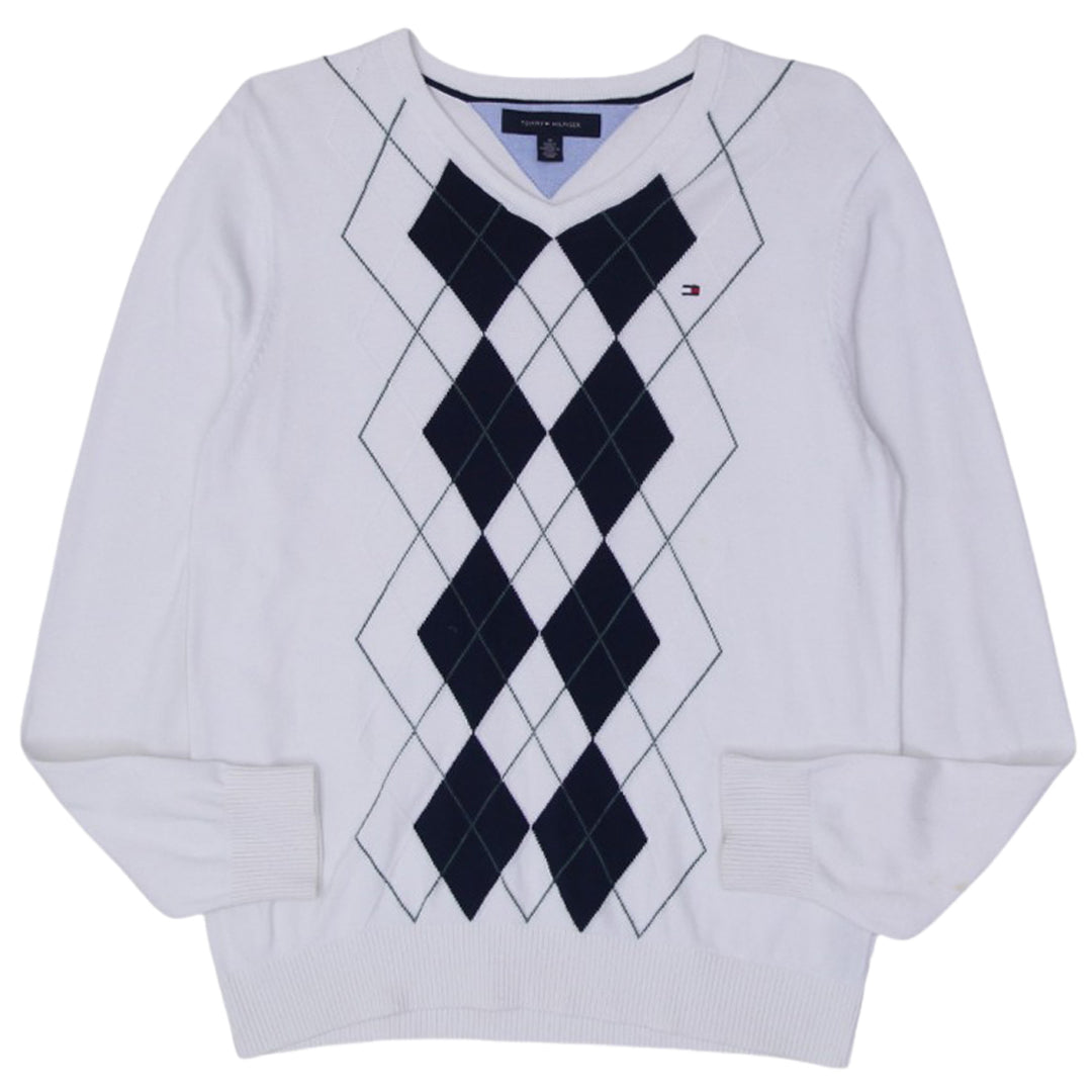 Mens Tommy Hilfiger Sweater White Argyle Knitwear V-Neck
