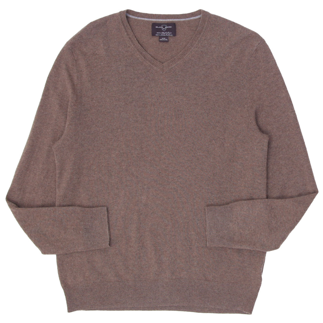 Mens Black Brown 100% Cashmere V-Neck Sweater
