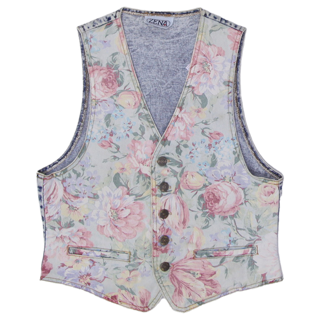 Ladies Floral Denim Vest