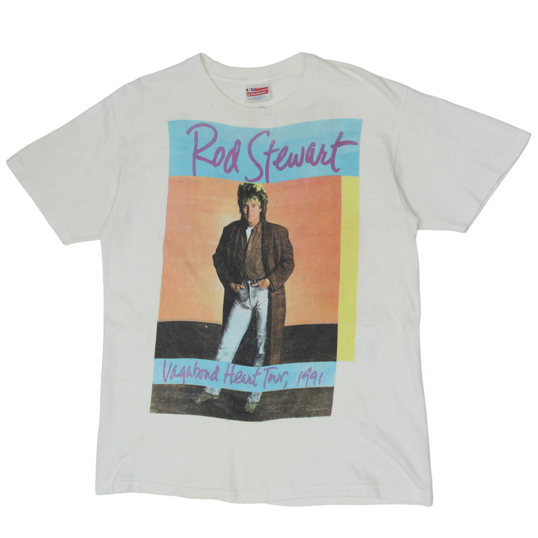 1991 Vintage Rod Stewart Vagabond Heart Tour T-Shirt S.Stitch Made in USA Hanes L