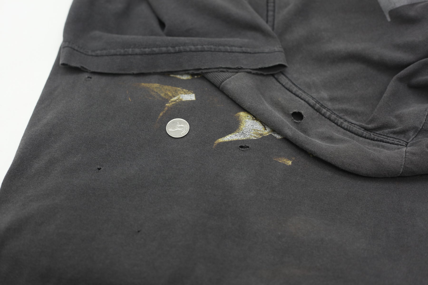 | FAIR | PREVIOUSLY WORN, WITH HEAVY WASH WEAR AND/OR FADE, AND SIGNIFICANT VISIBLE FLAW(S). |