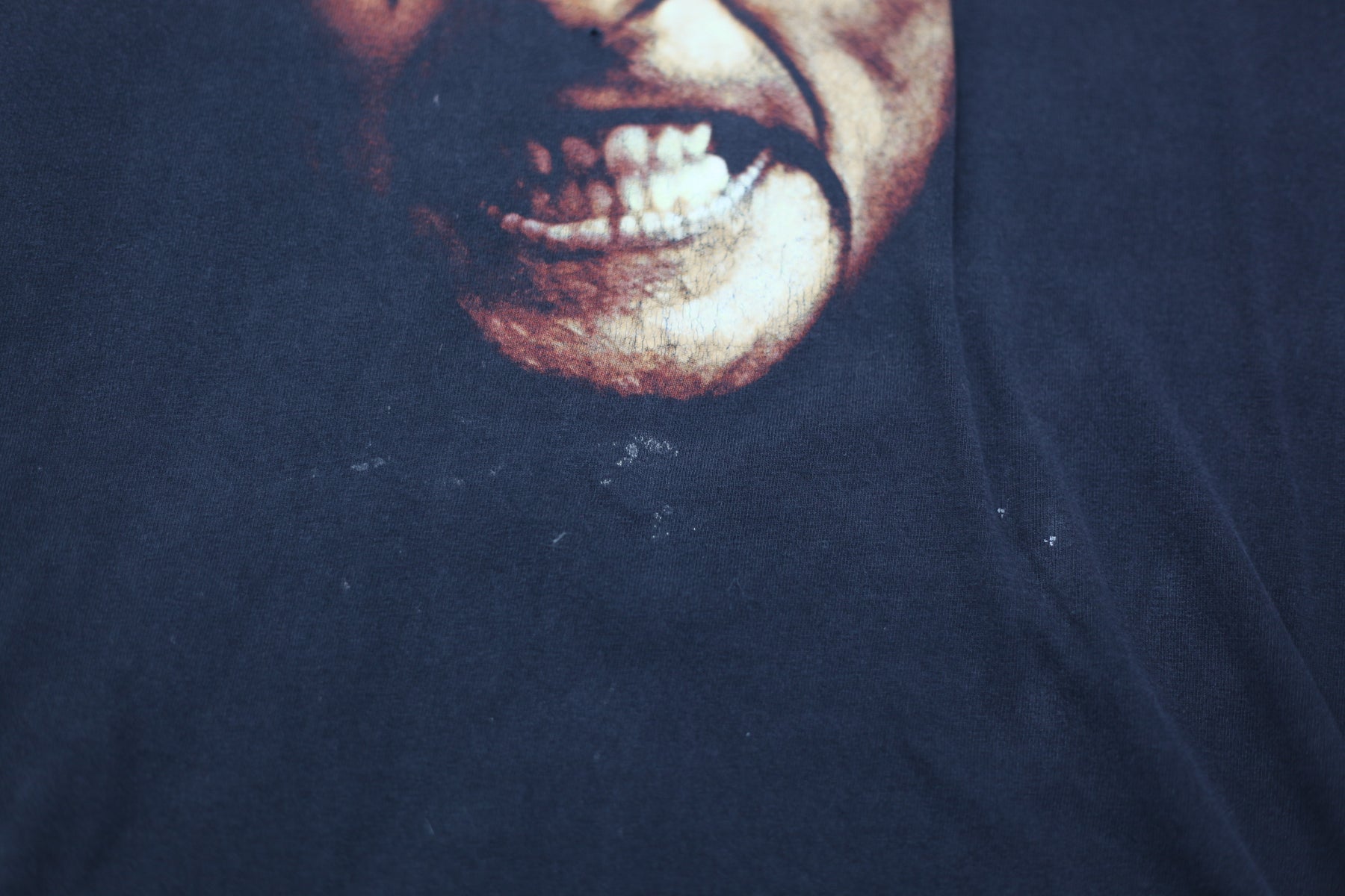 | Hole on upper back, armpit & waist. Minor crack on print. Stain on bottom |