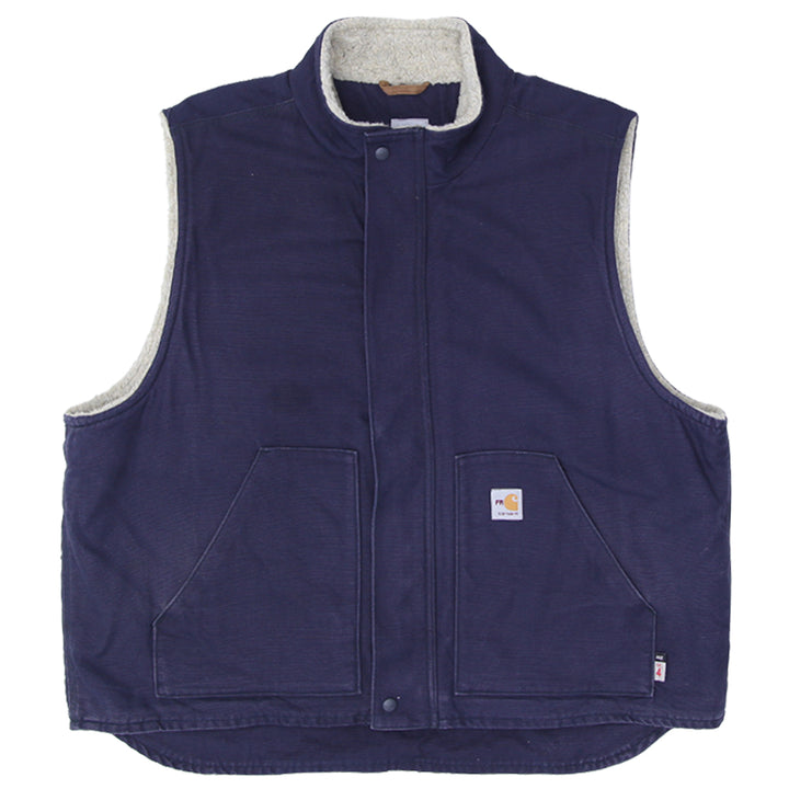 Mens Carhartt FR (Flame-Resistant) Sherpa-Lined Vest – Navy, Size 2XL - Fashion Rerun Vintage Migration_Jacket