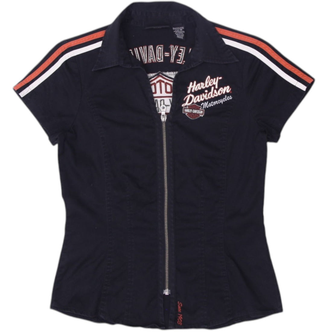 Ladies Harley Davidson Shirt Black Zip Graphic Motorcycle XS
