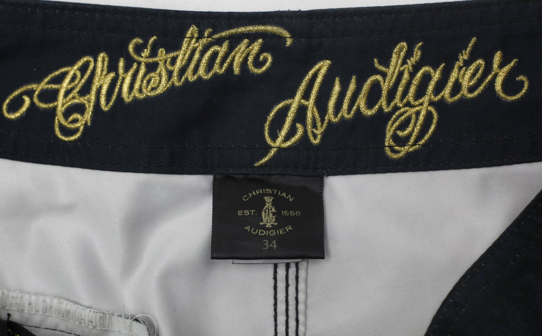 Y2K Mens Christian Audigier Boardshorts Black Skulls Roses Graphic 34