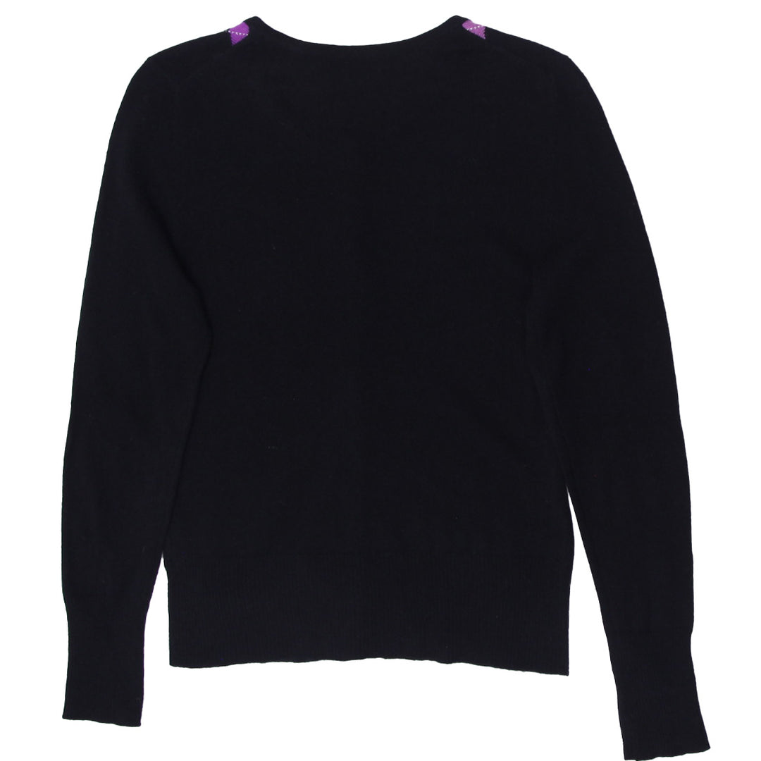 Ladies APT.9 Button Argyle 100% Cashmere Sweater