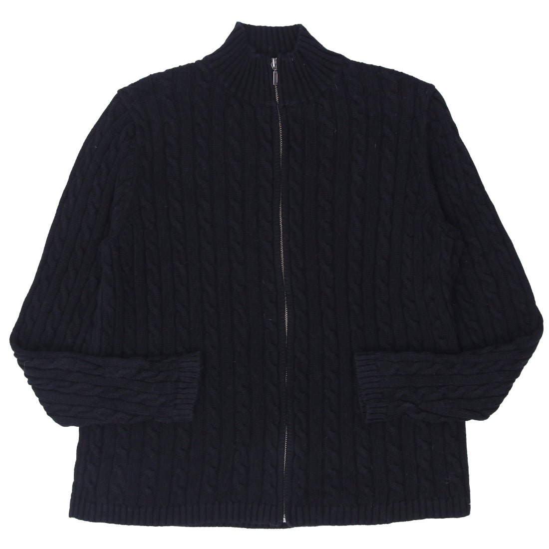 Ladies L.L. Bean Cable Knit Full Zip Sweater Black