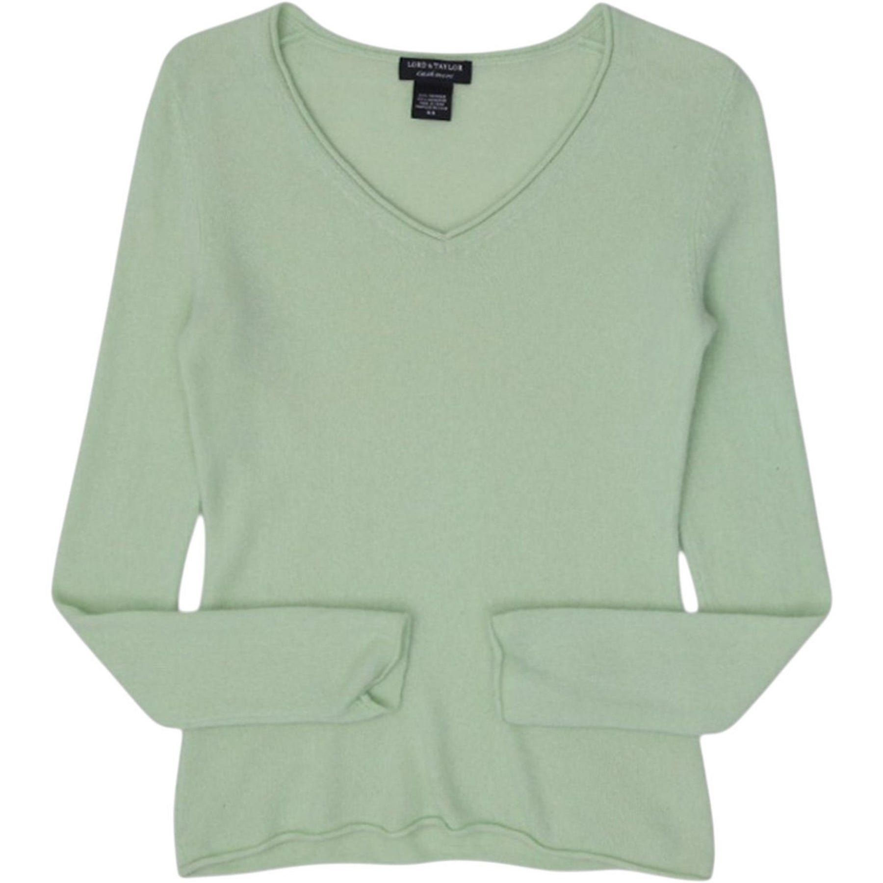 Ladies Lord & Taylor Cashmere Sweater Pastel Green V-Neck Knit