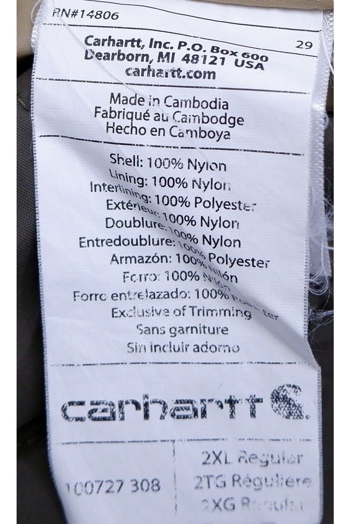 Mens Carhartt 100727 308 Full Zip Hooded Quilted Jacket