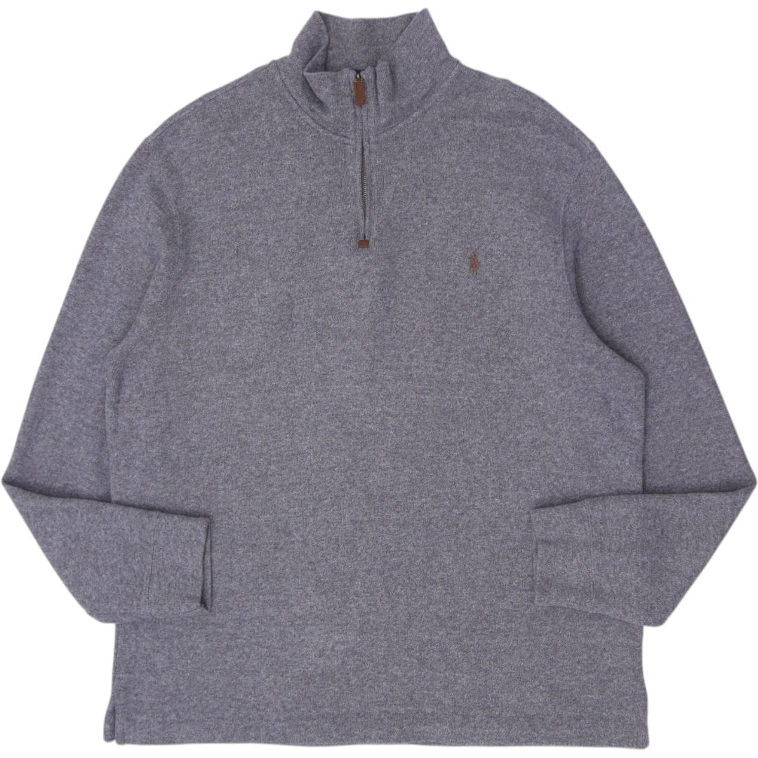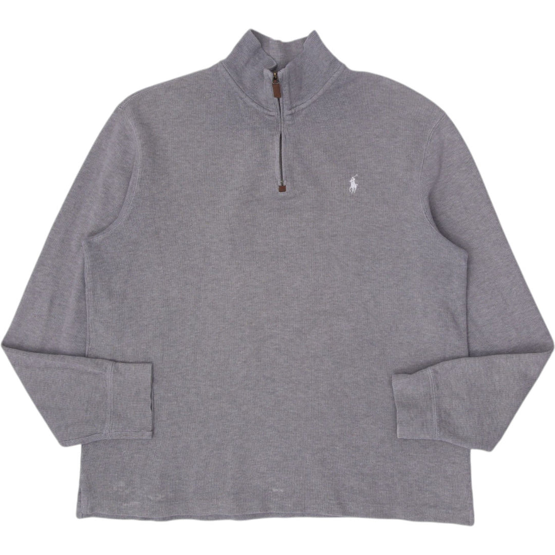 Mens Polo Ralph Lauren Sweater Gray 1/4 Zip Cotton Knitwear Size M