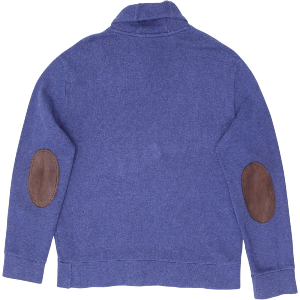 Mens Polo Ralph Lauren Sweater Blue Button Neck Elbow Patches Size L