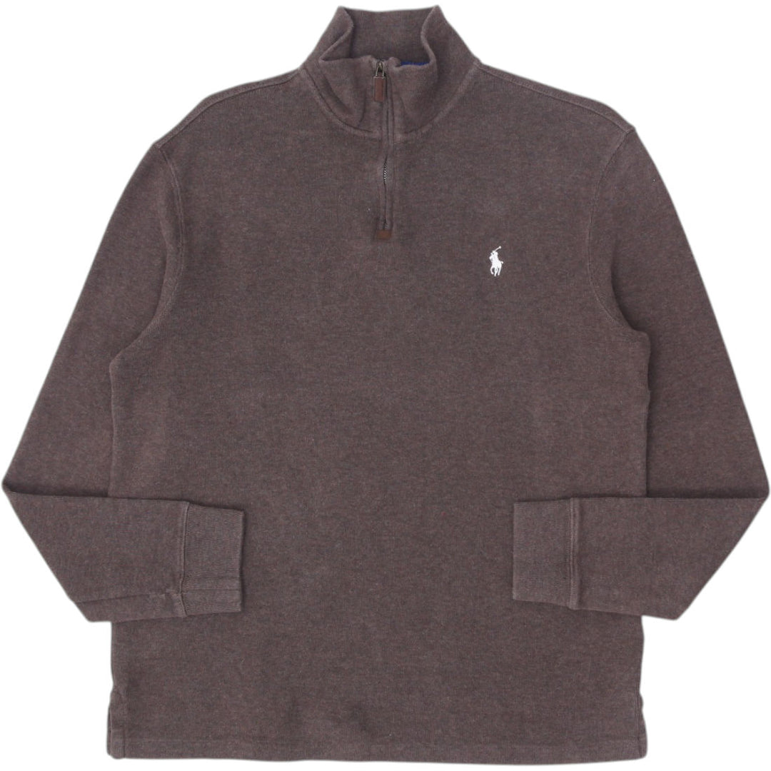 Mens Polo Ralph Lauren Sweater Brown 1/4 Zip Knitwear Size M