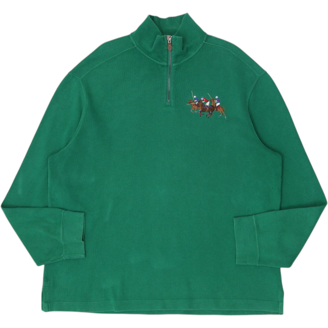 Mens Polo Ralph Lauren Green 1/4 Zip Sweater Embroidered Logo Size XXL