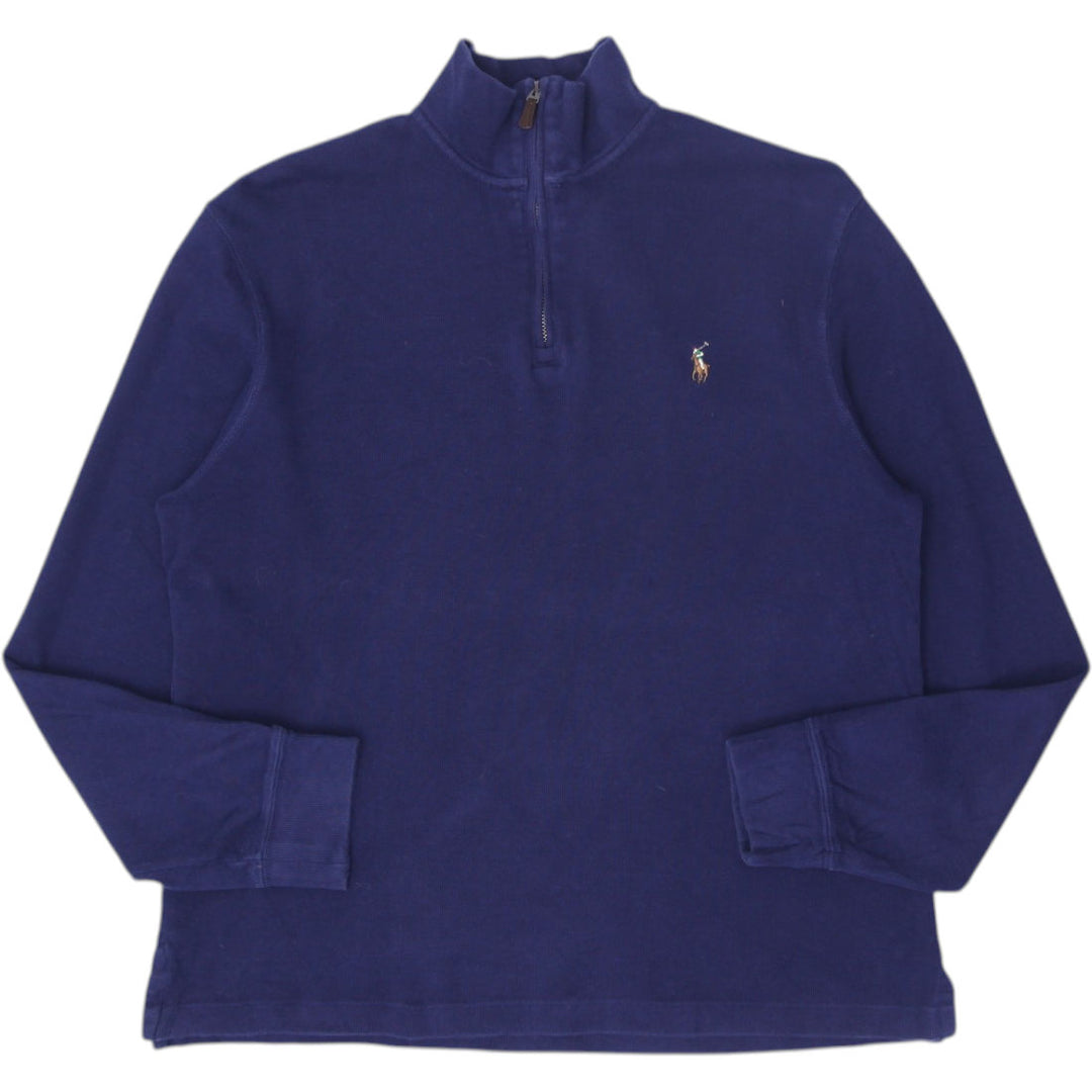 Mens Polo Ralph Lauren Navy Sweater Quarter Zip Cotton Embroidered