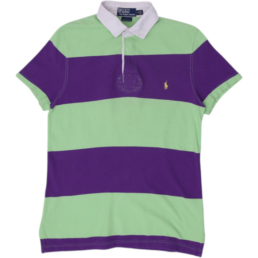 Mens Polo Ralph Lauren Custom Fit Polo T-Shirt Purple Green Striped