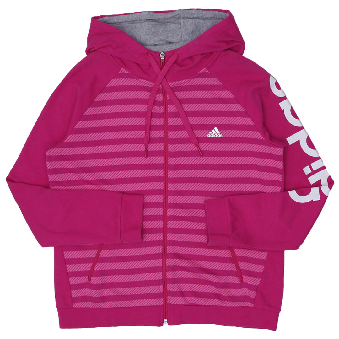 Ladies Adidas Full Zip Hoodie Front Stripe Pink