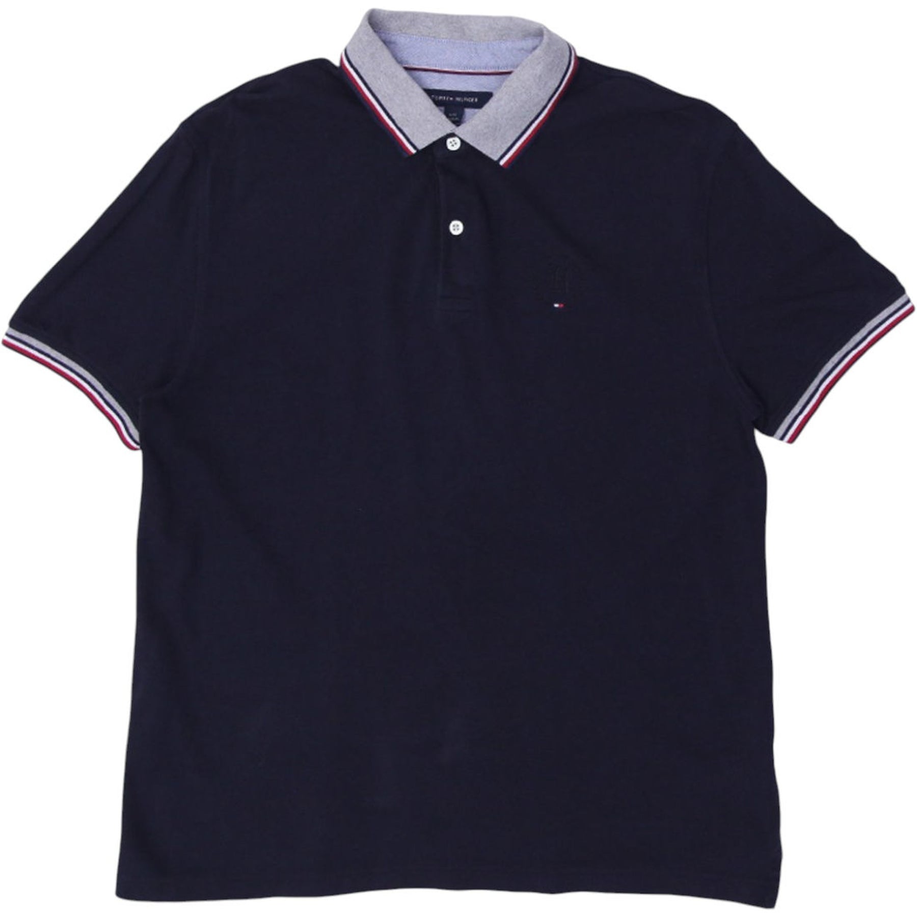 Mens Tommy Hilfiger Polo Navy Striped Collar Short Sleeve Classic