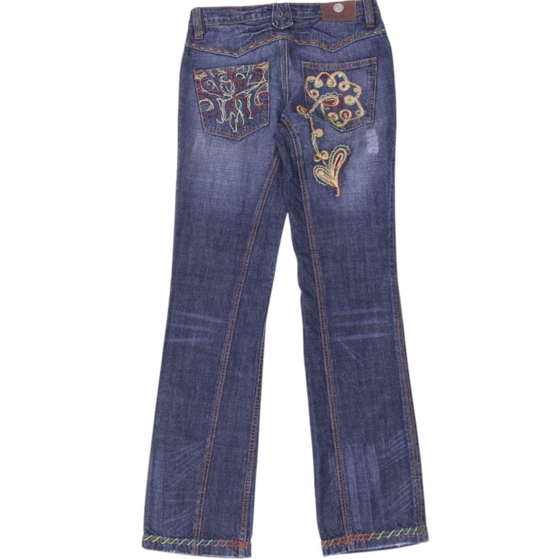 Y2K Ladies Antik Denim Embellished Jeans Blue Embroidered Flare Size 29