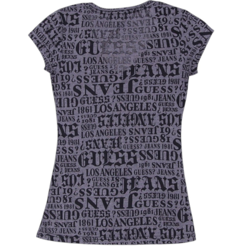 Y2K Ladies Guess Sparkle T-Shirt Gray V-Neck Short Sleeve