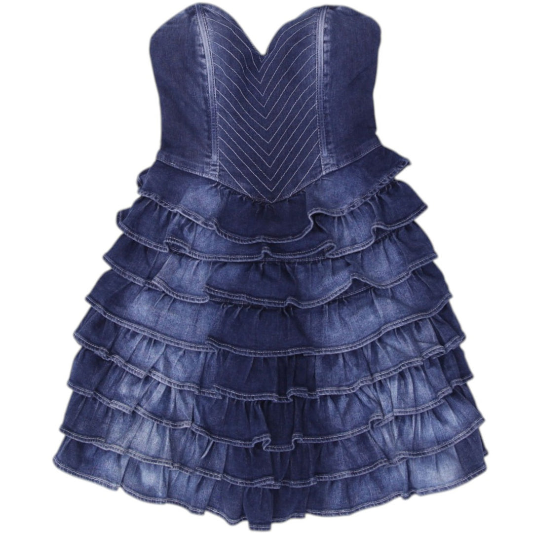 Y2K Ladies Guess Tube Ruffle Layered Denim Dress