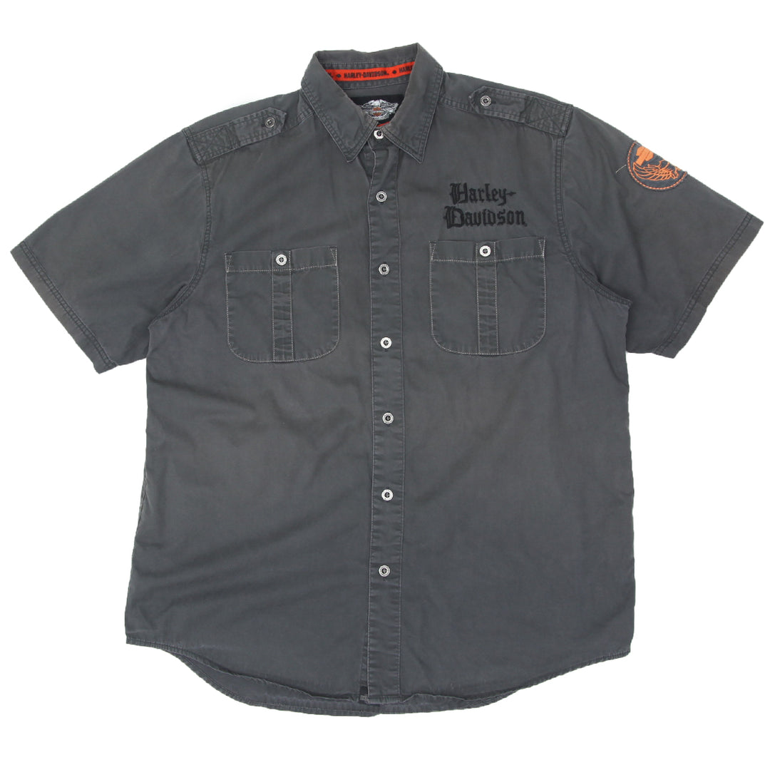 Mens Harley Davidson Black Short Sleeve Button Down Embroidered Collar Shirt