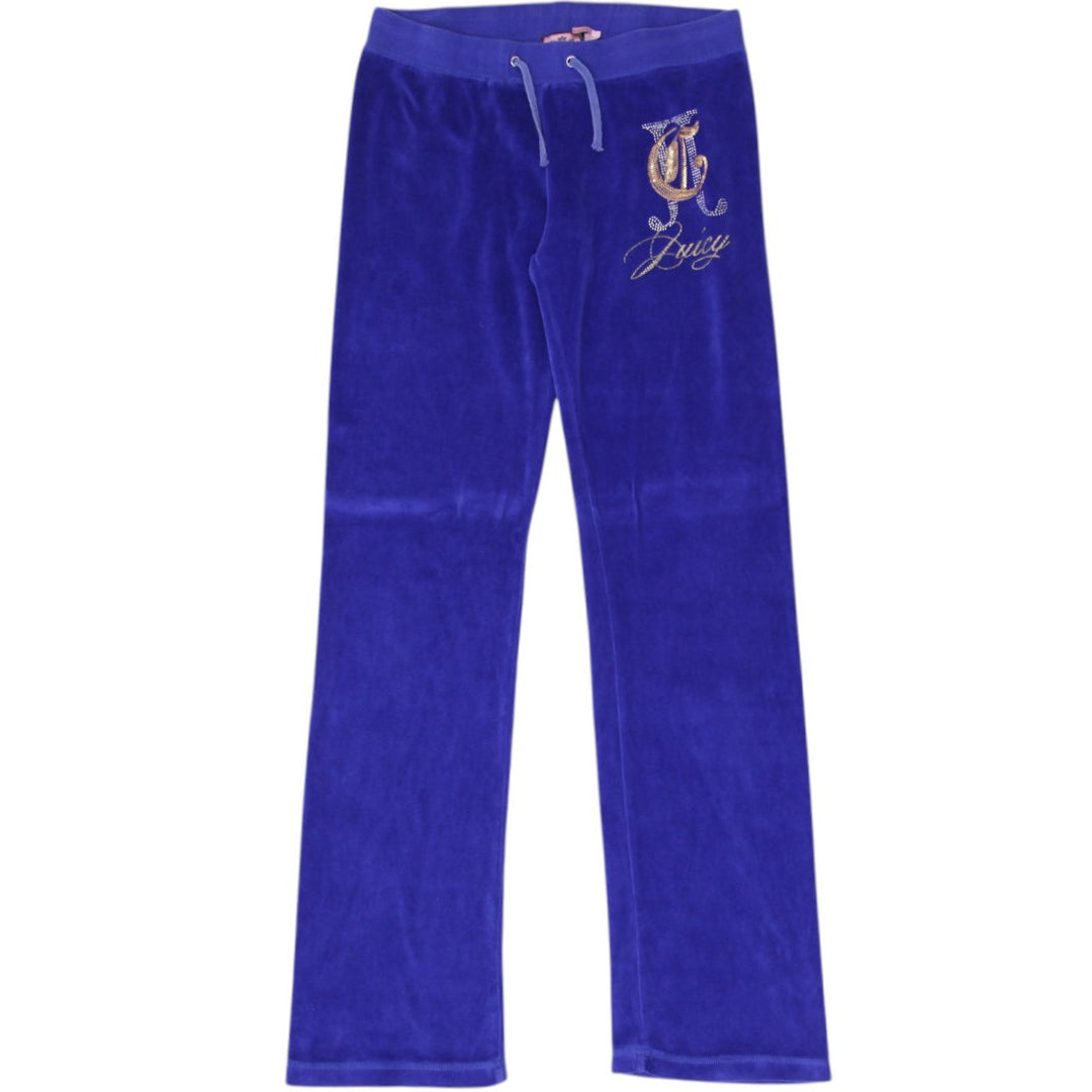 Y2K Ladies Juicy Couture Velour Pants Royal Blue Embroidered Logo L