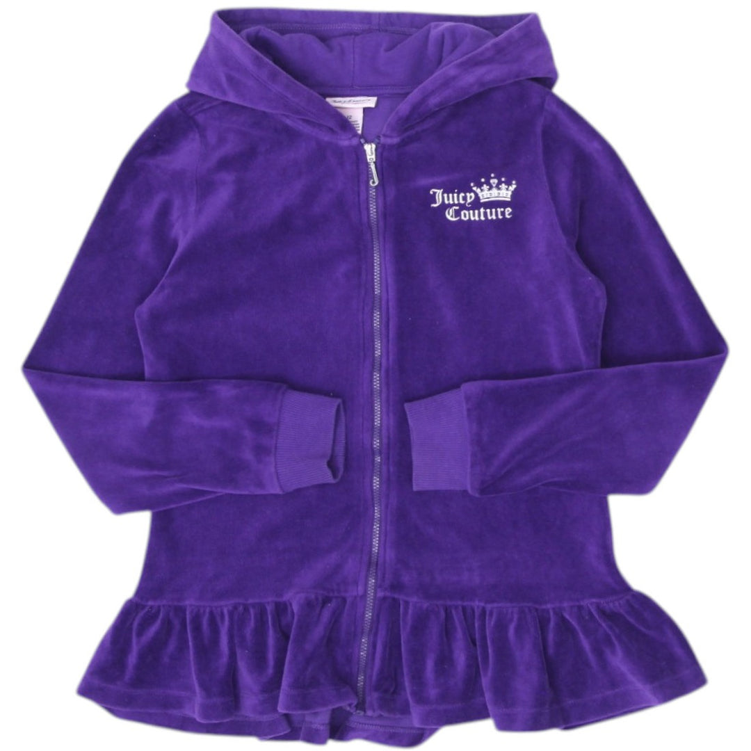 Y2K Youth Girls Juicy Couture Velvet Hoodie Purple Full Zip Ruffle