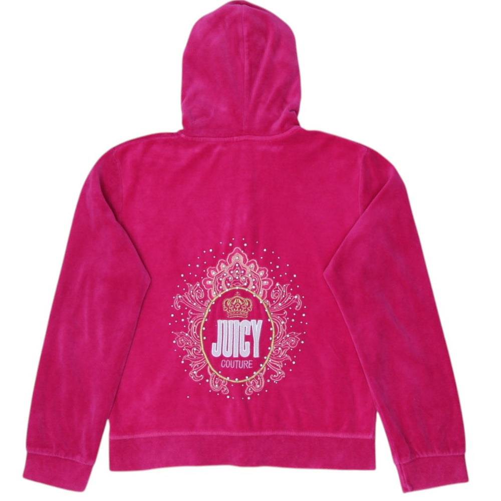 Y2K Ladies Juicy Couture Hoodie Pink Velour Glitter Graphic