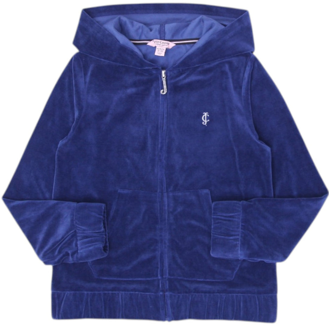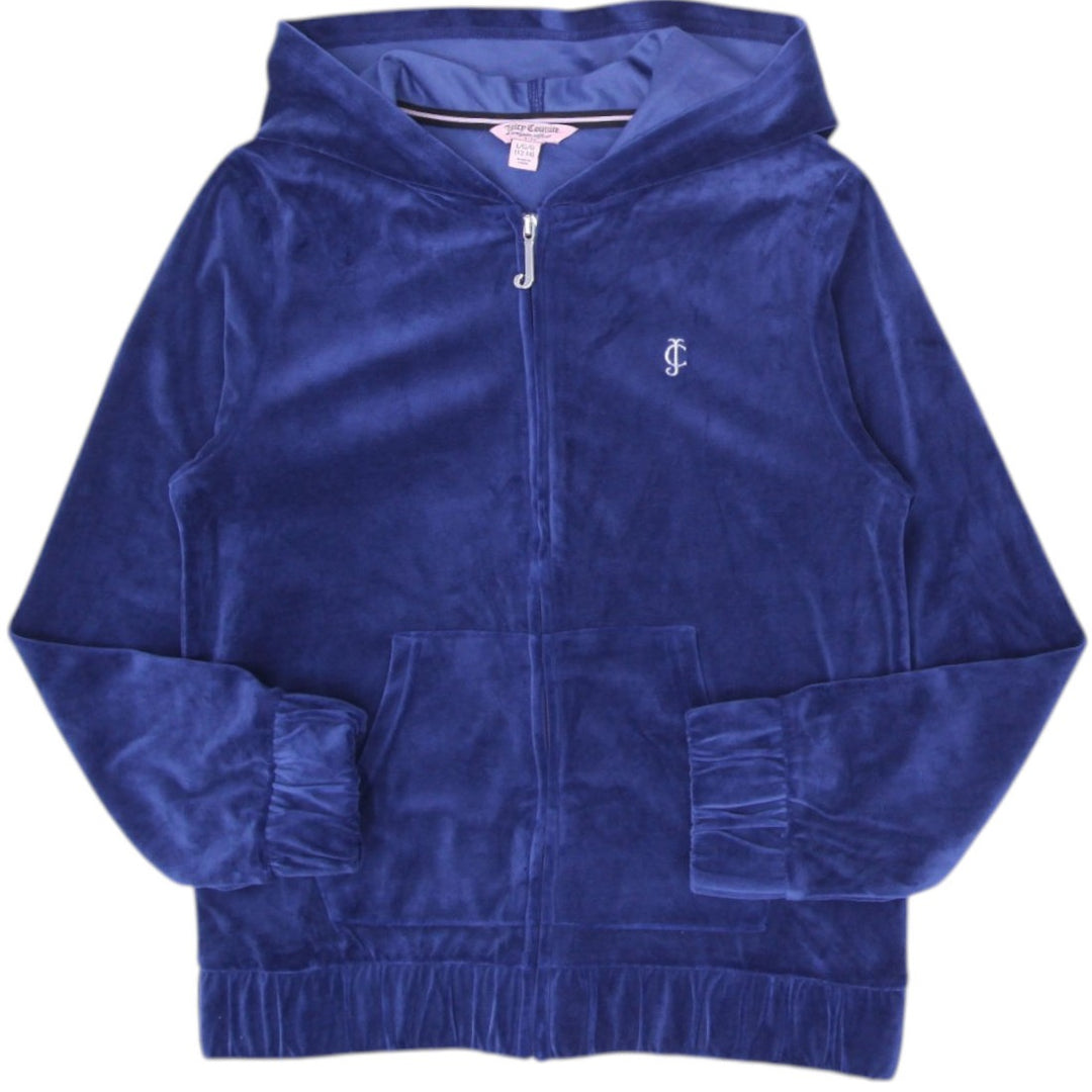 Y2K Youth Girls Juicy Couture Velour Full Zip Navy Hoodie M (8-10)
