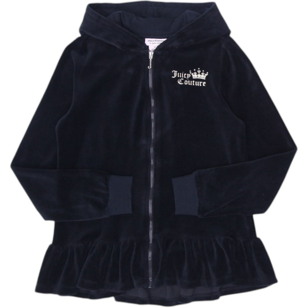 Y2K Youth Girls Juicy Couture Hoodie Black Velour Full Zip Ruffled Size 8/10