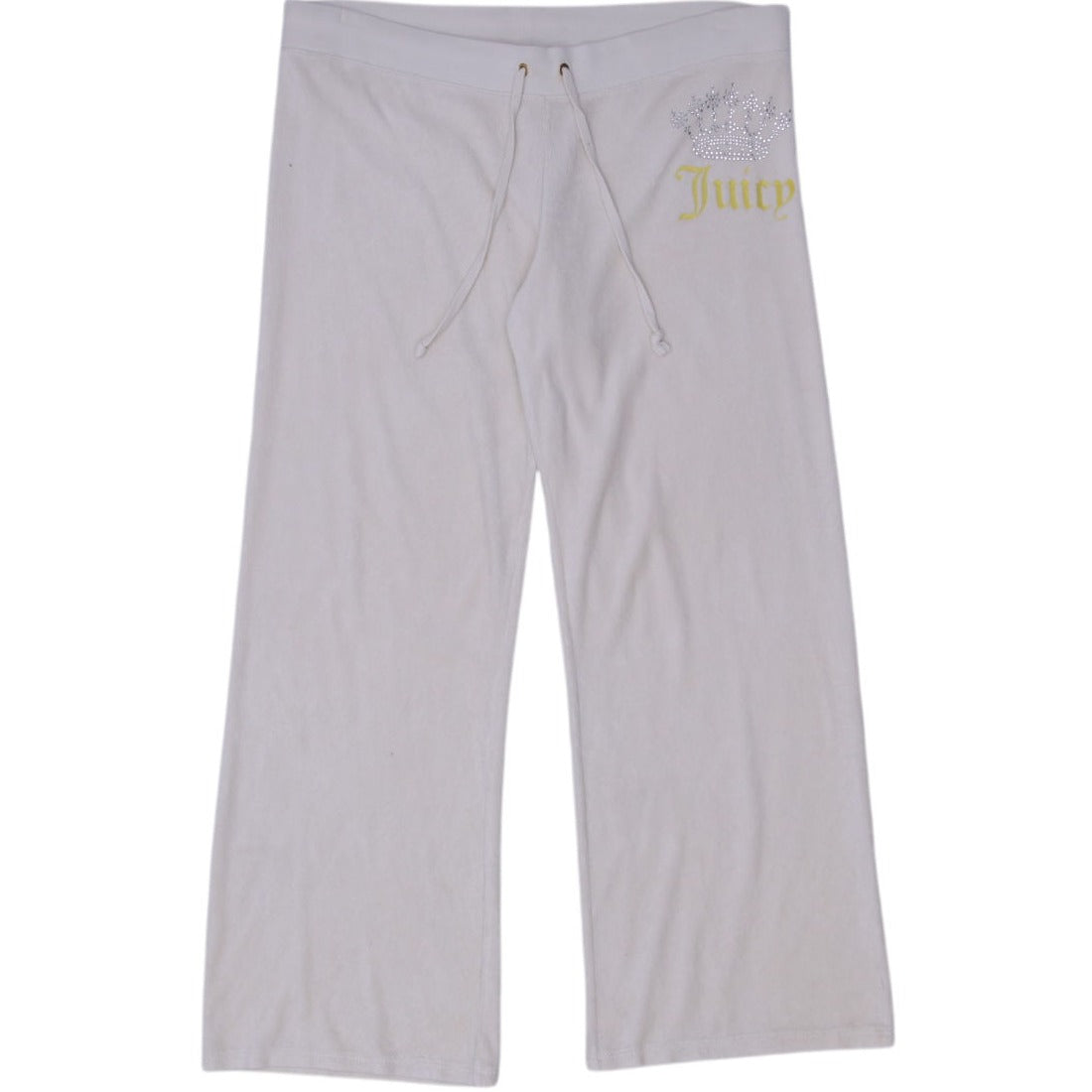 Y2K Ladies Juicy Couture Cream Rhinestone Design Wide Leg Pants