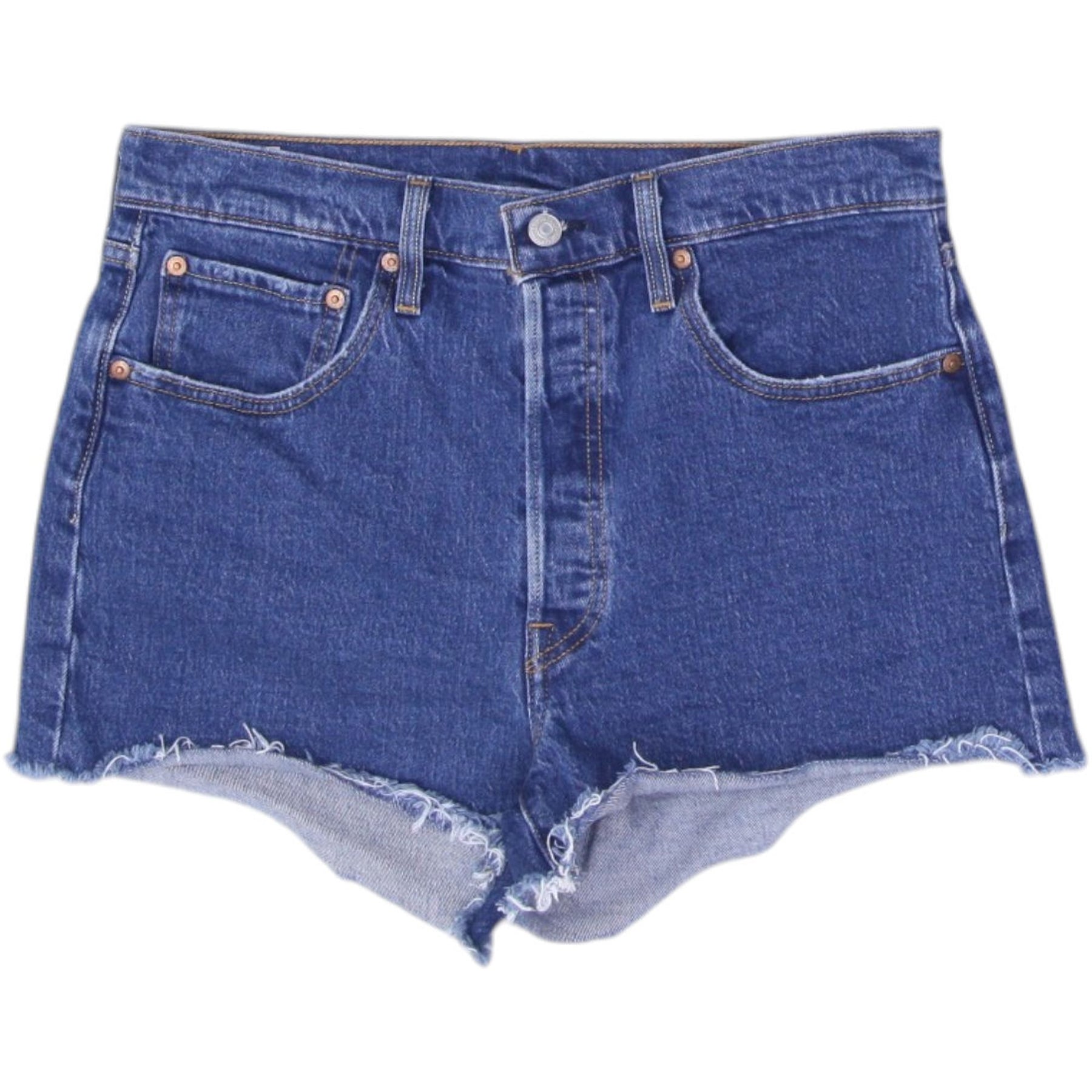 Ladies Levi's Denim Shorts Blue Frayed High Waist Retro