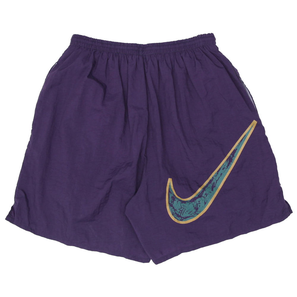 90's Vintage Nike Purple Logo Nylon Shorts Black