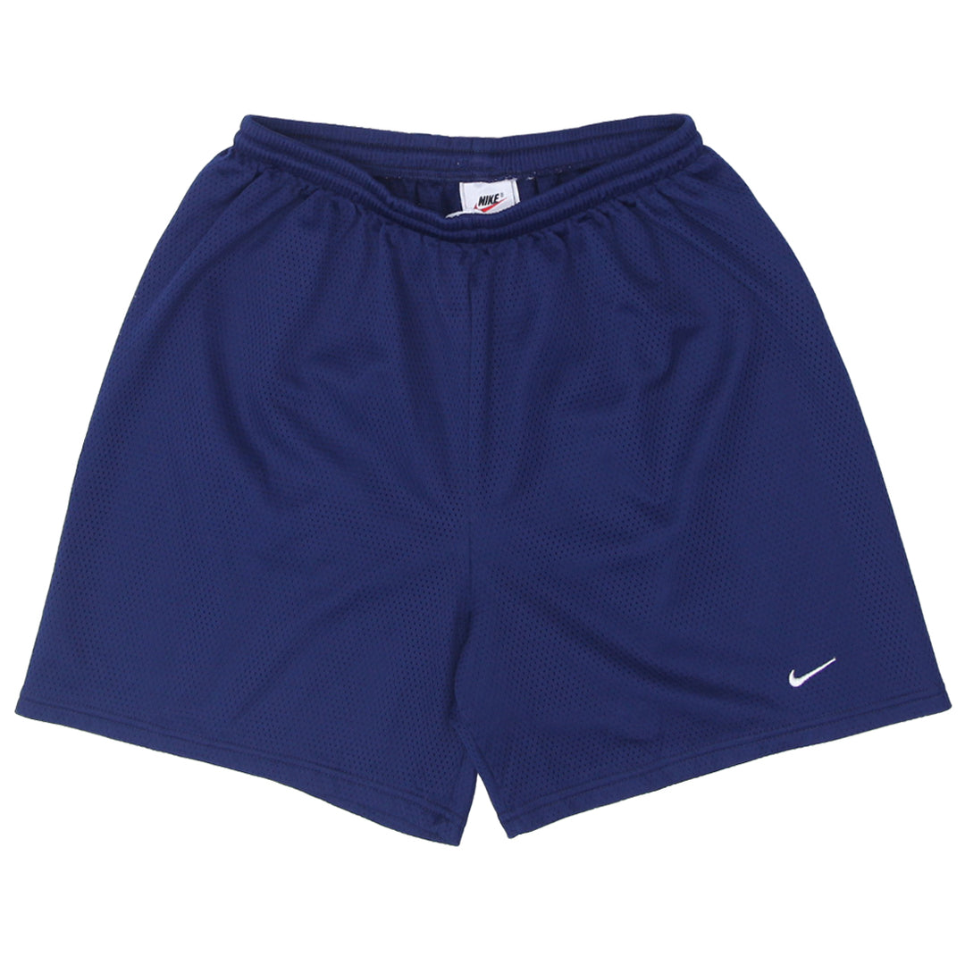 90's Vintage Nike Swoosh Embroidered Mesh Shorts Navy Blue Youth