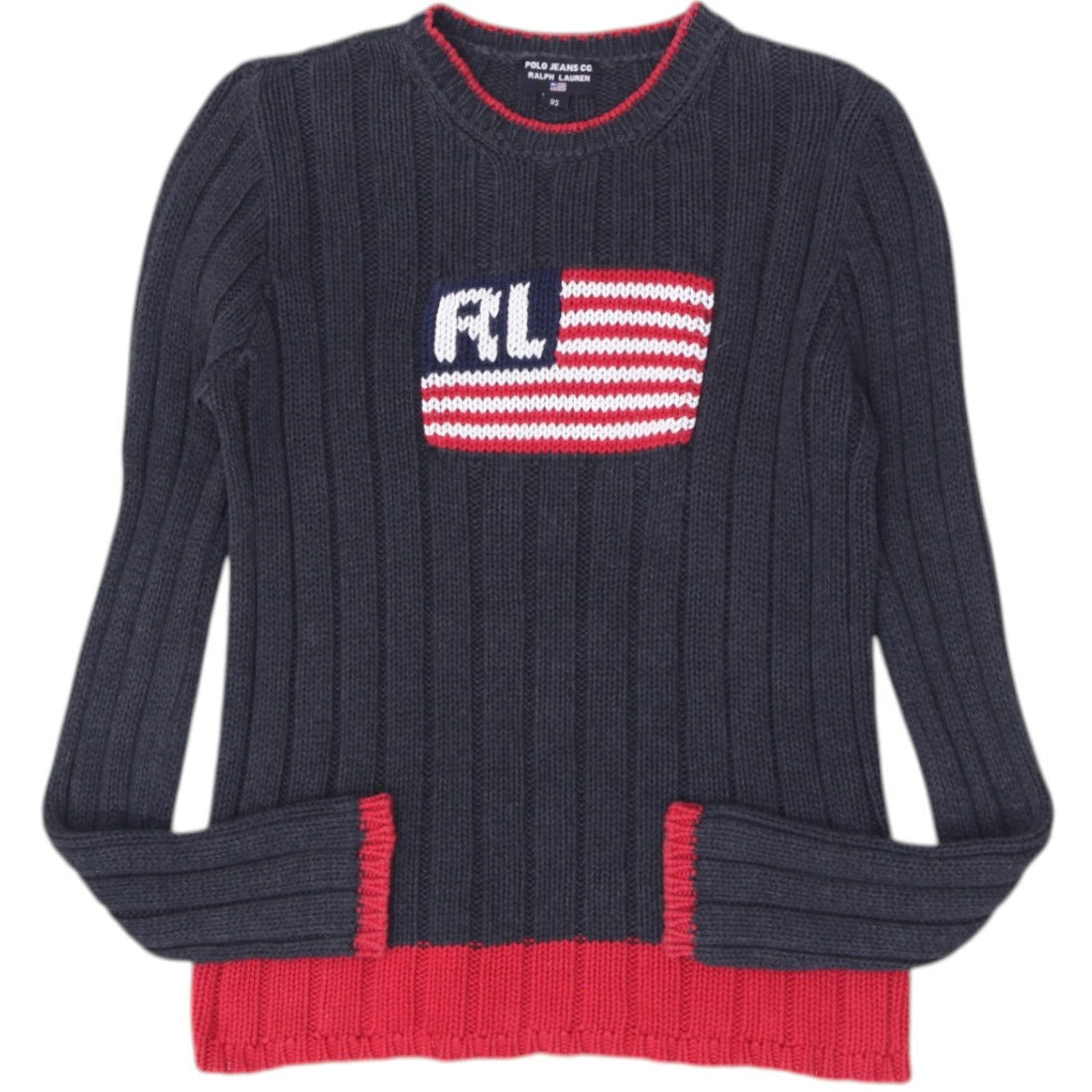 Vintage Polo Ralph Lauren Ribbed American Flag Charcoal Grey Knit Sweater