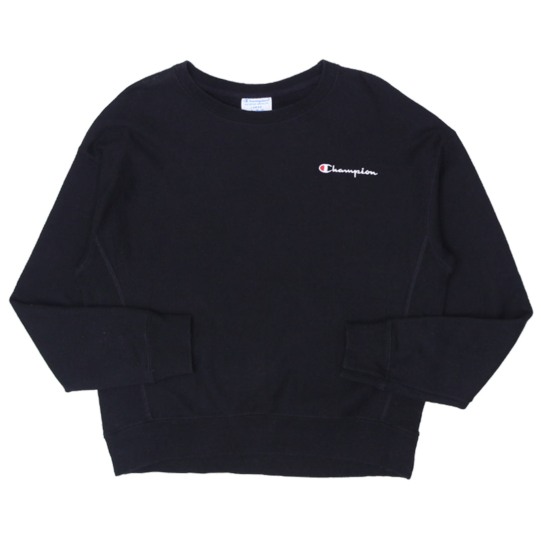 Ladies Champion Reverse Weave Black Crewneck Sweatshirt
