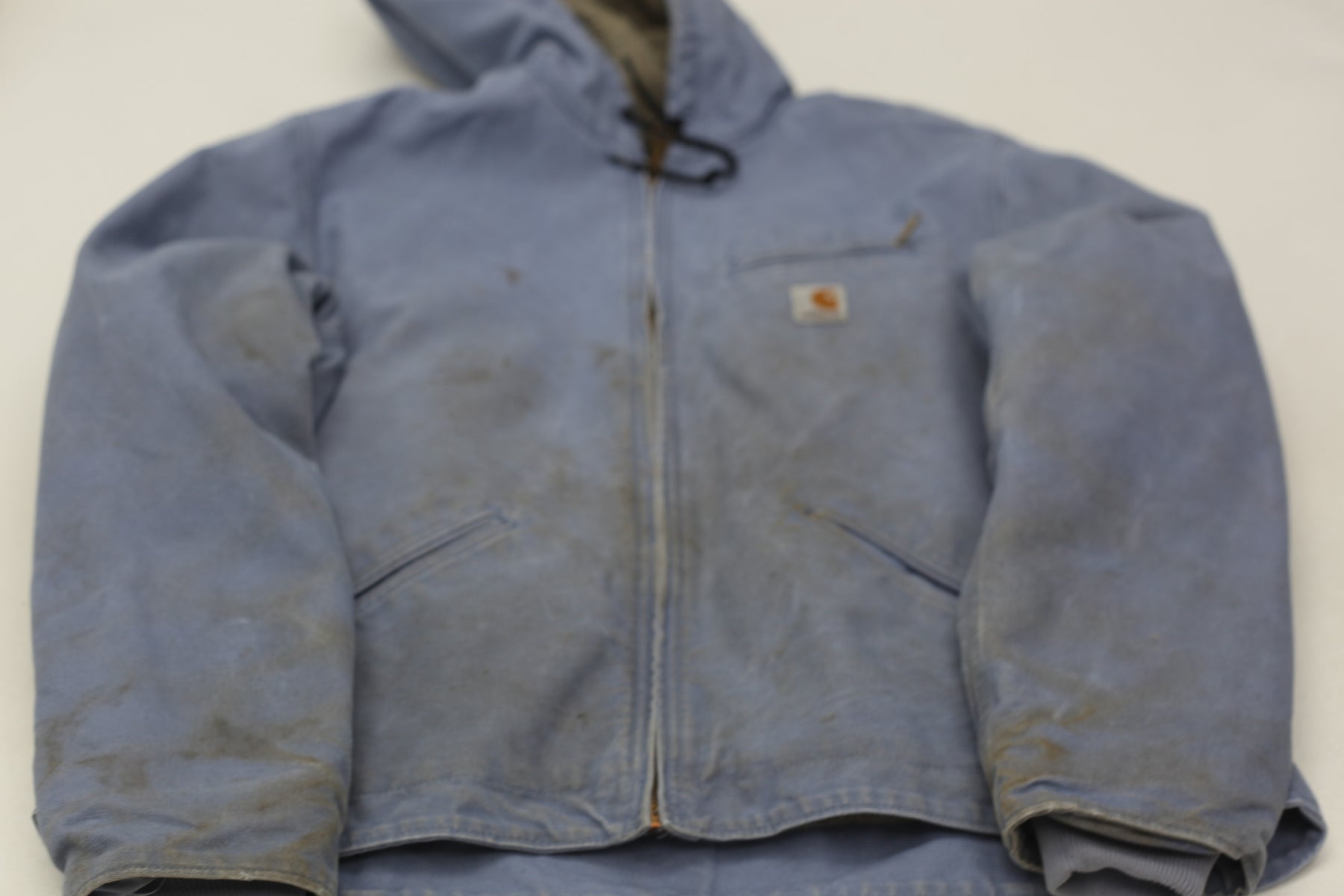 | Has visible signs of wear, stain on the front & sleeves |