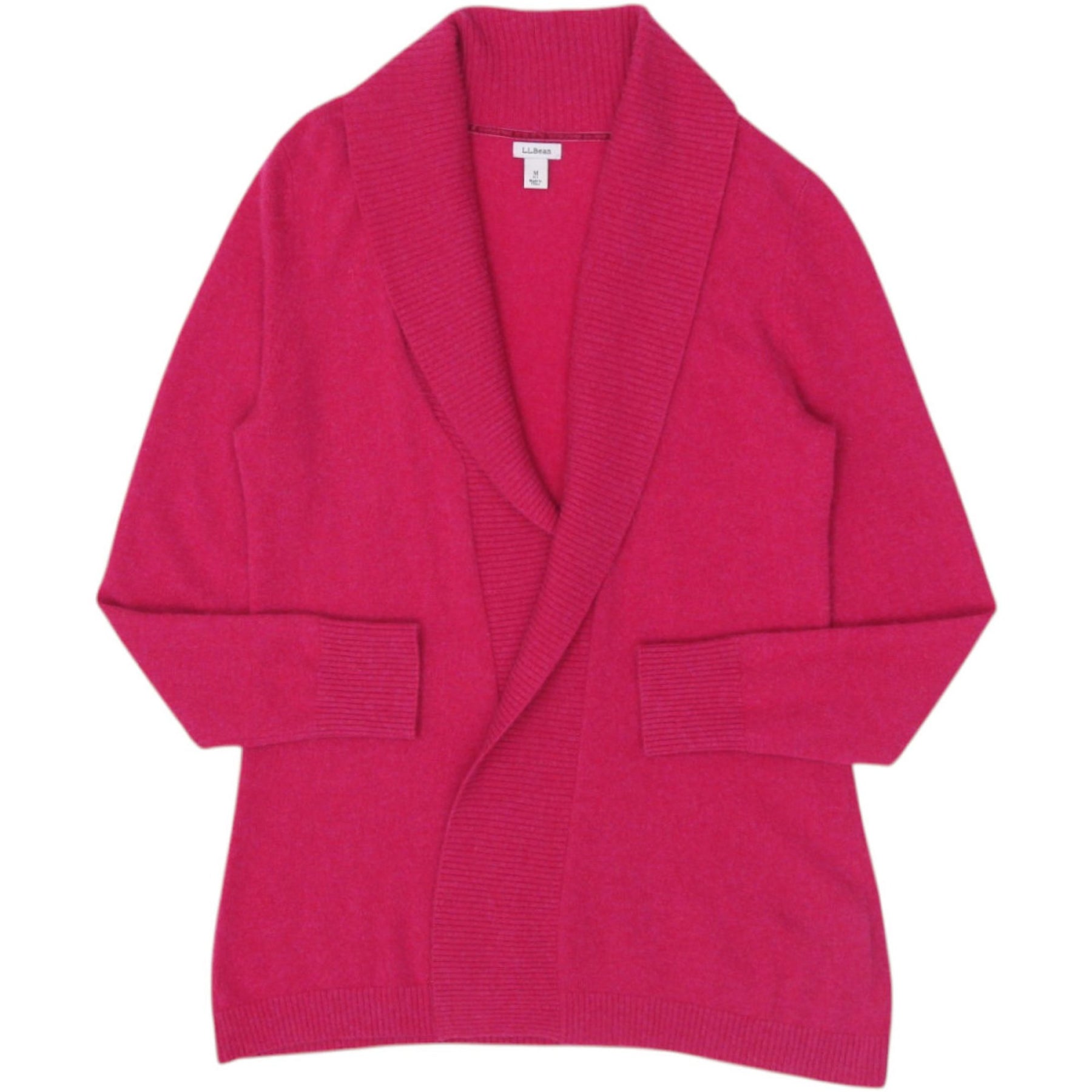 Ladies L.L. Bean Open Cardigan Pink Knit Shawl Collar M