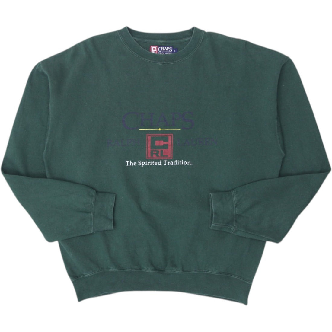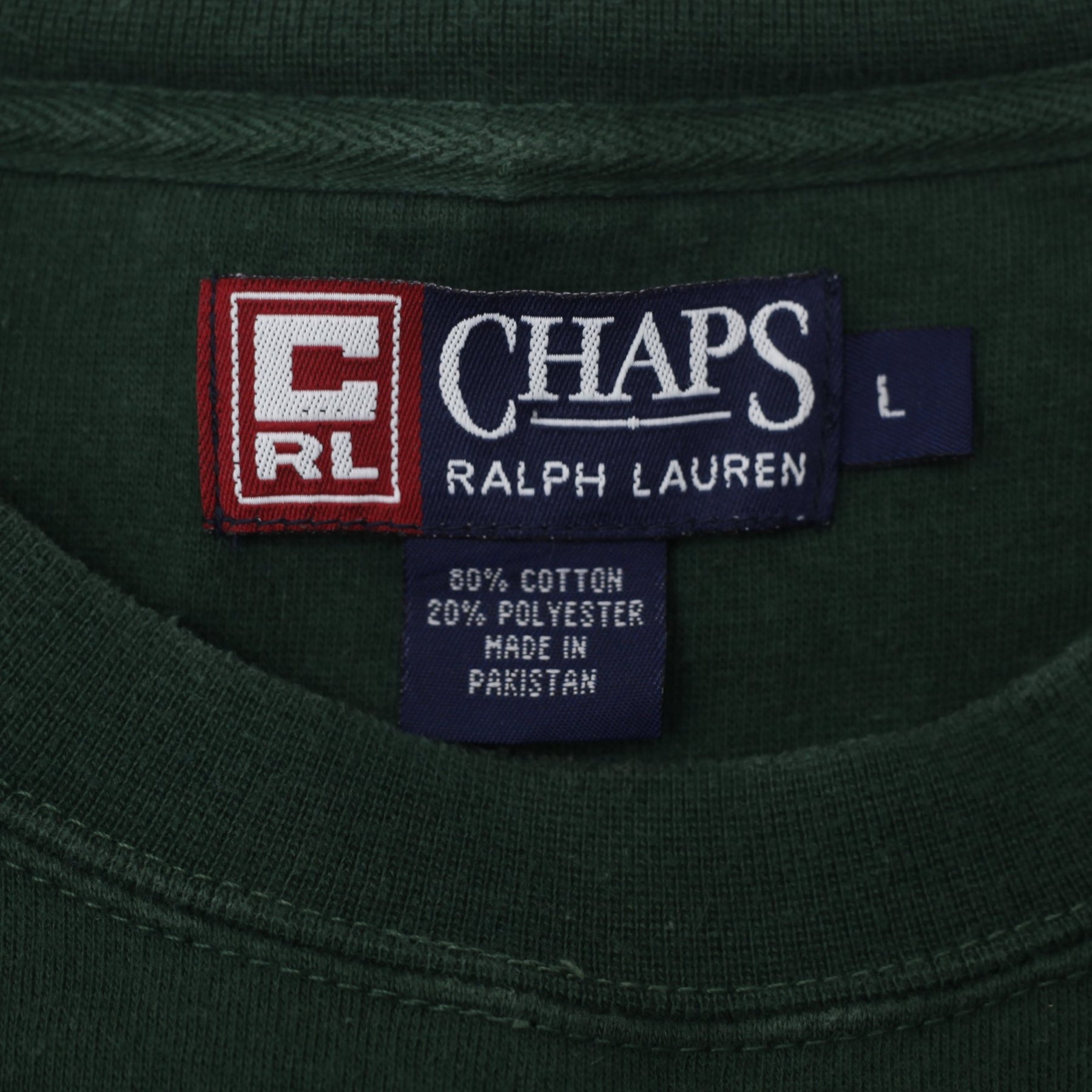 Mens Chaps Ralph Lauren Sweatshirt Green Logo Cotton Blend Size L