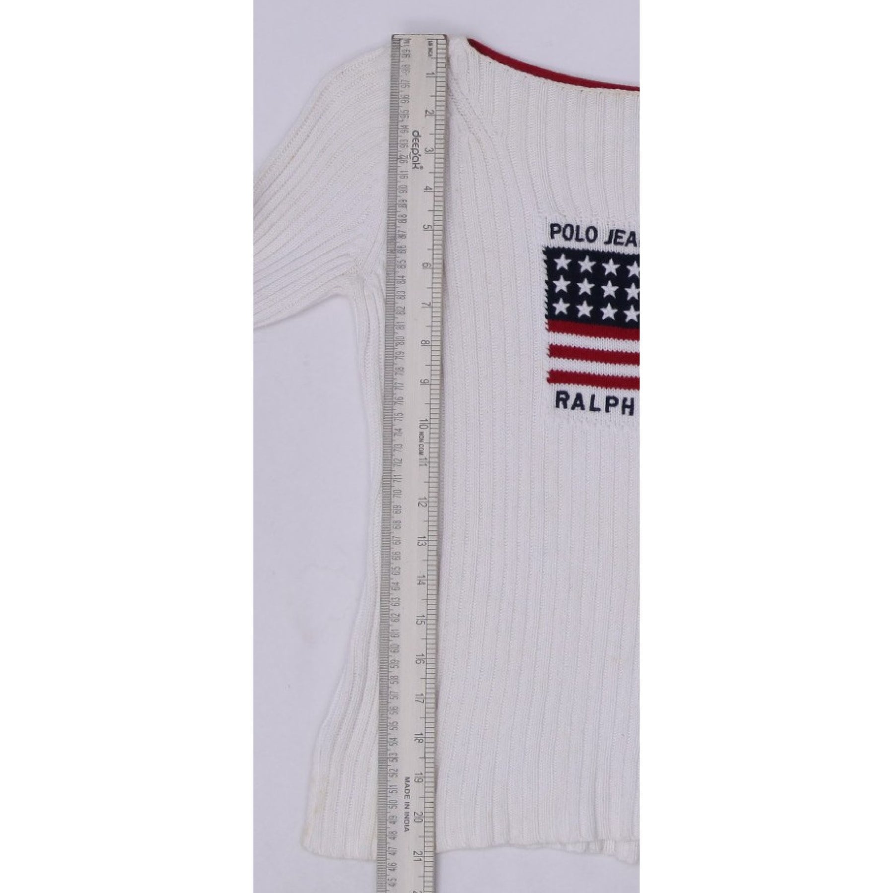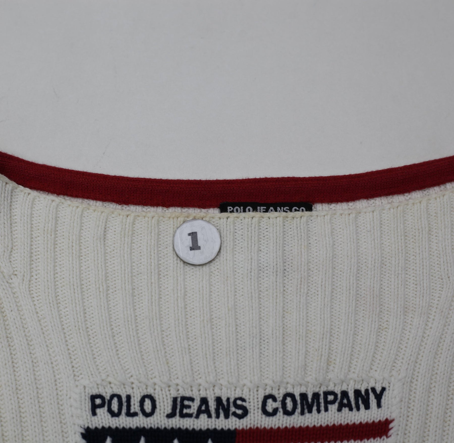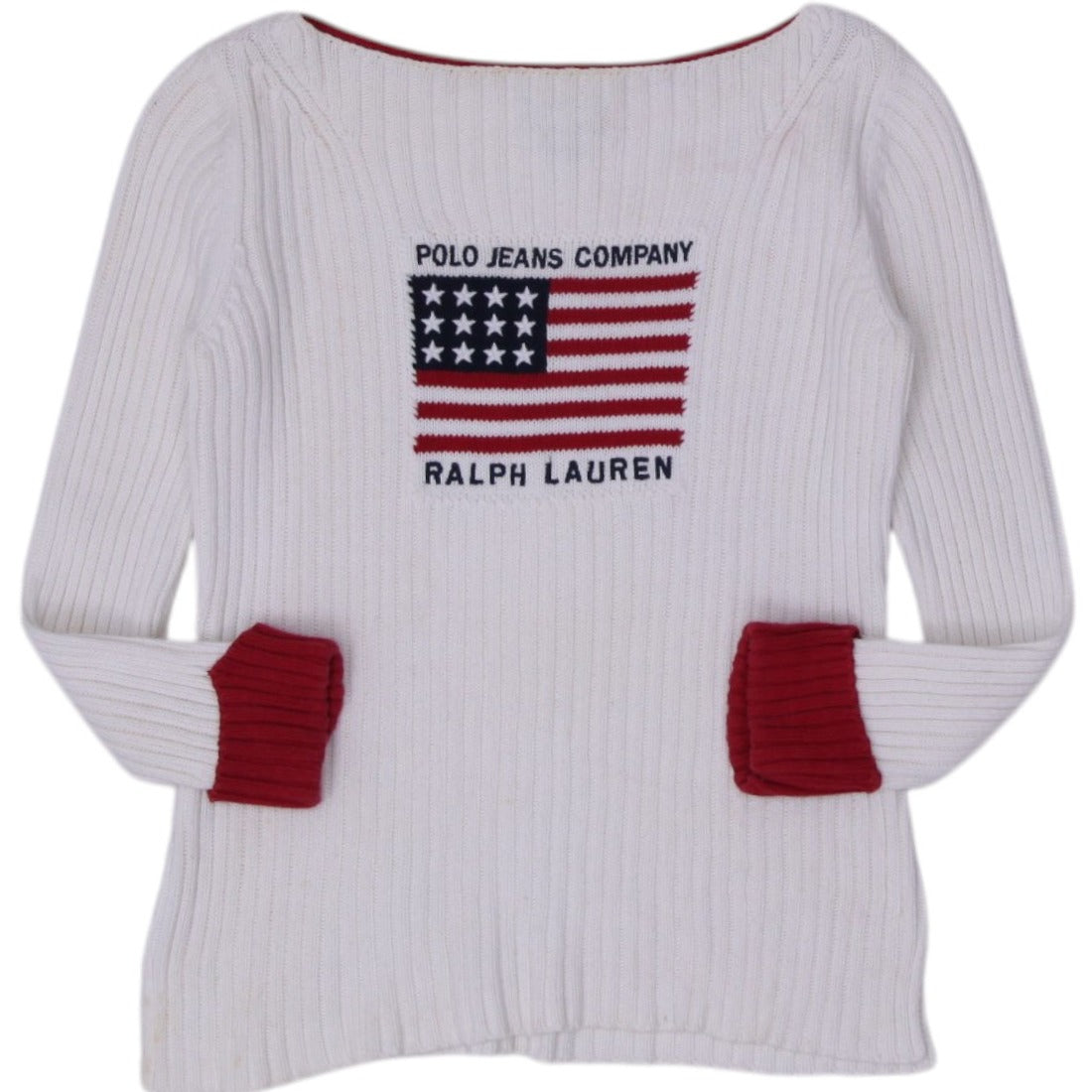 Vintage Ribbed Polo Jeans Company Ralph Lauren American Flag Sweater Red Cuffs
