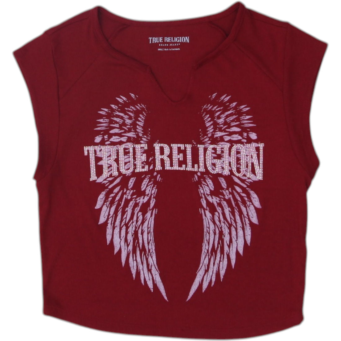 Y2K Ladies True Religion Crop Top Red Graphic Logo Size S