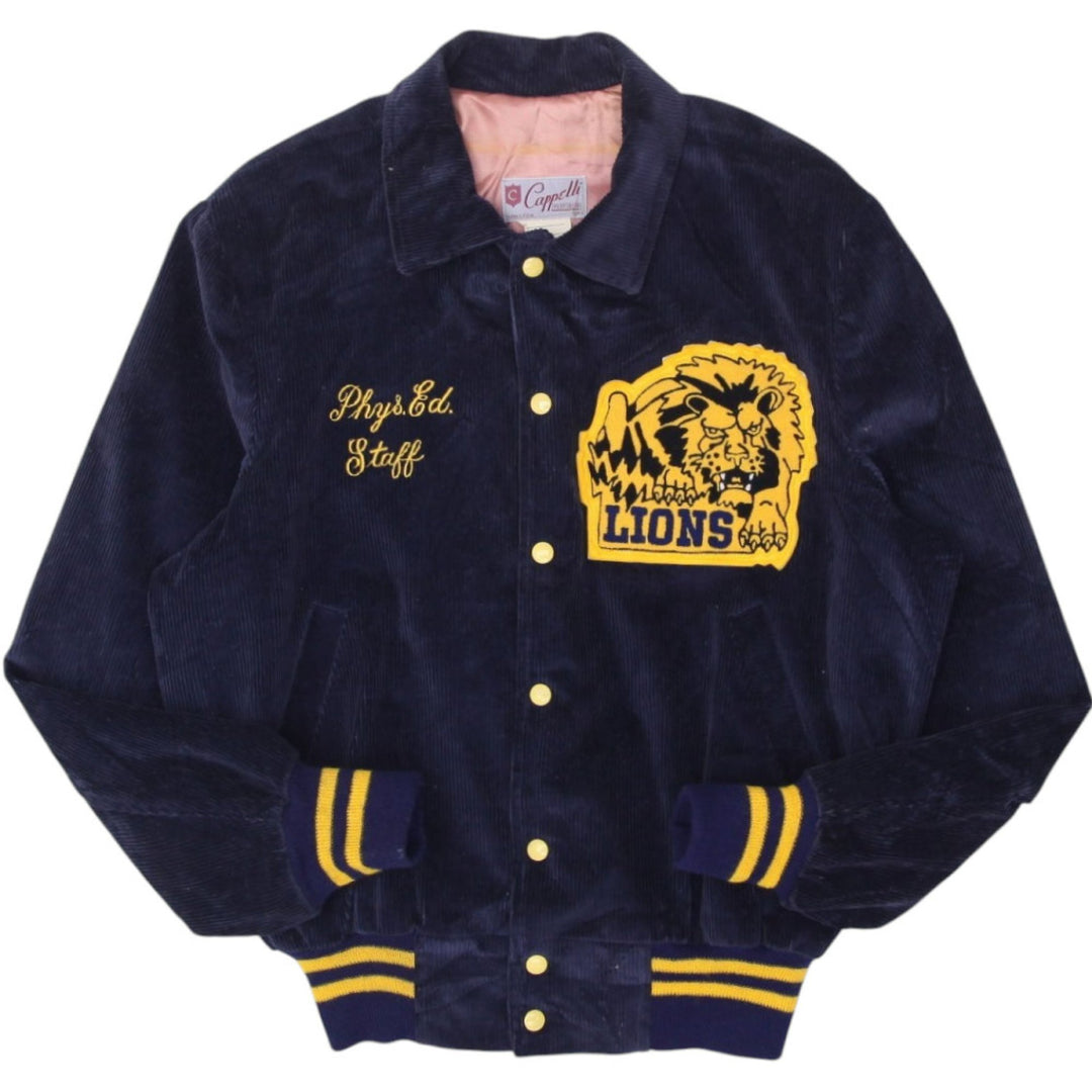 Vintage Mens Champion Blaine Navy Jacket Athletic Striped V-Neck