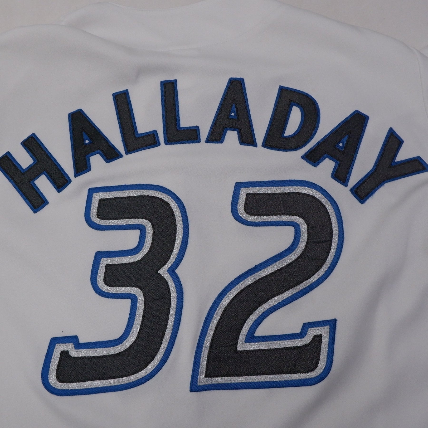 Vintage Blue Jays Majestic #32 Halladay Button Baseball Jersey