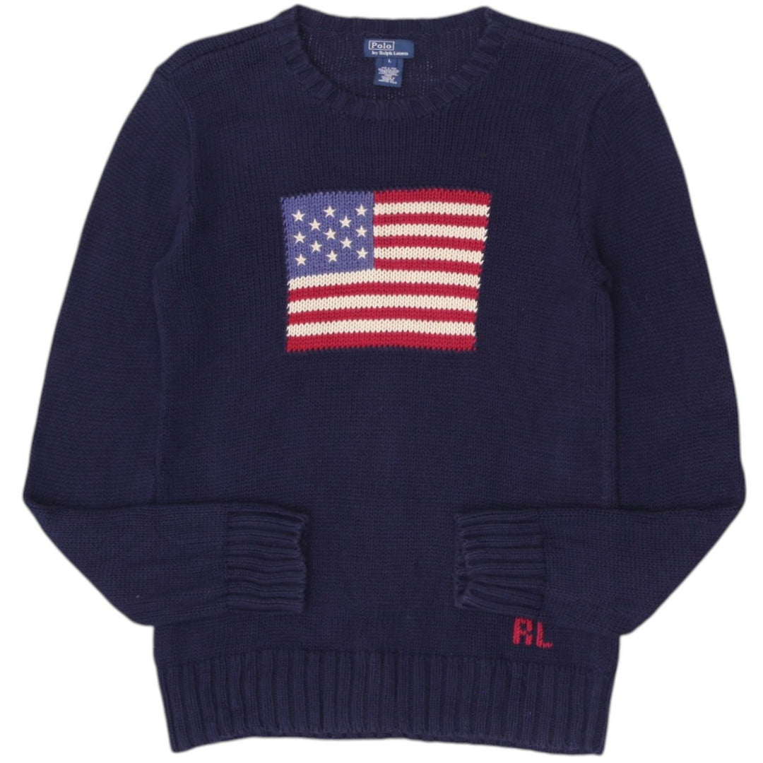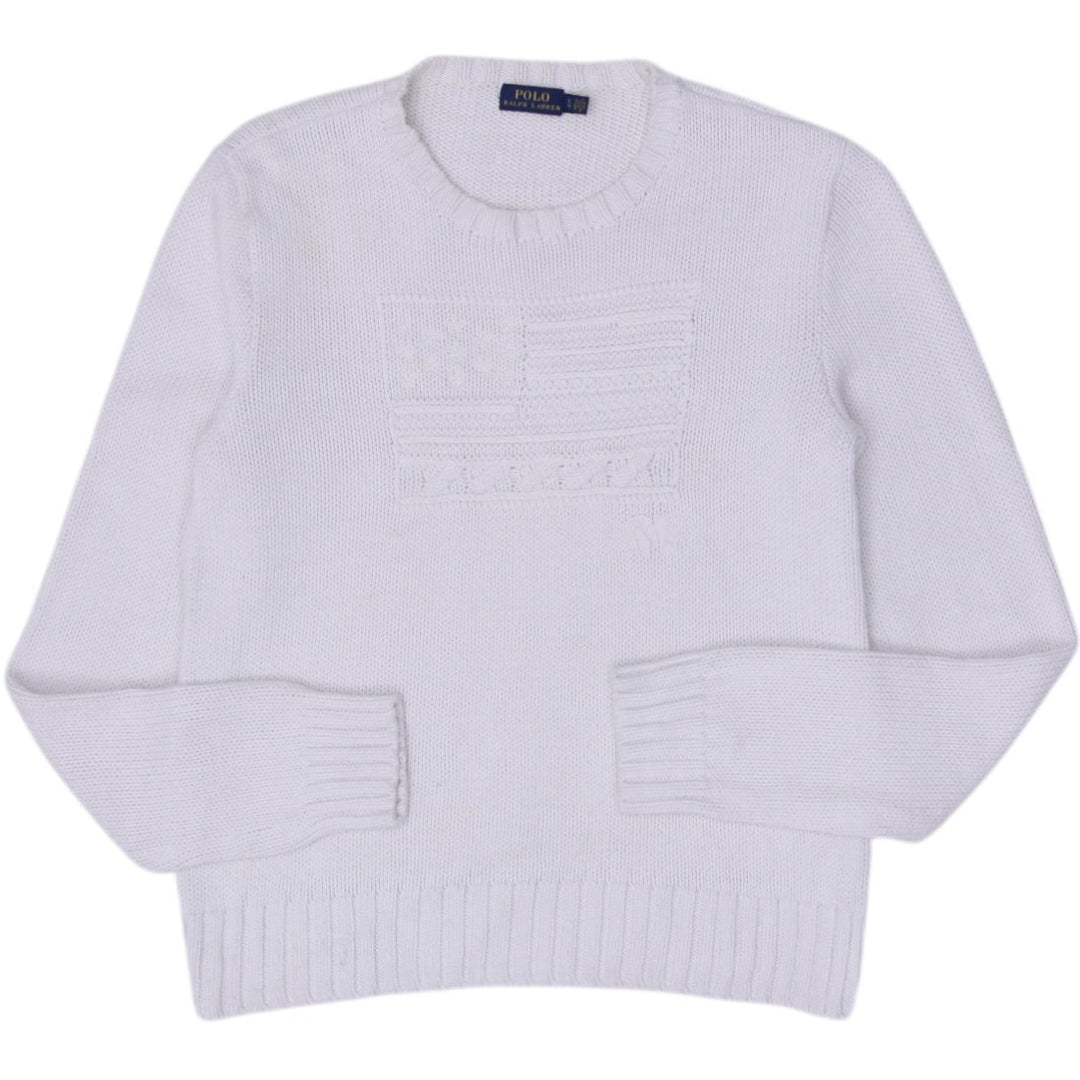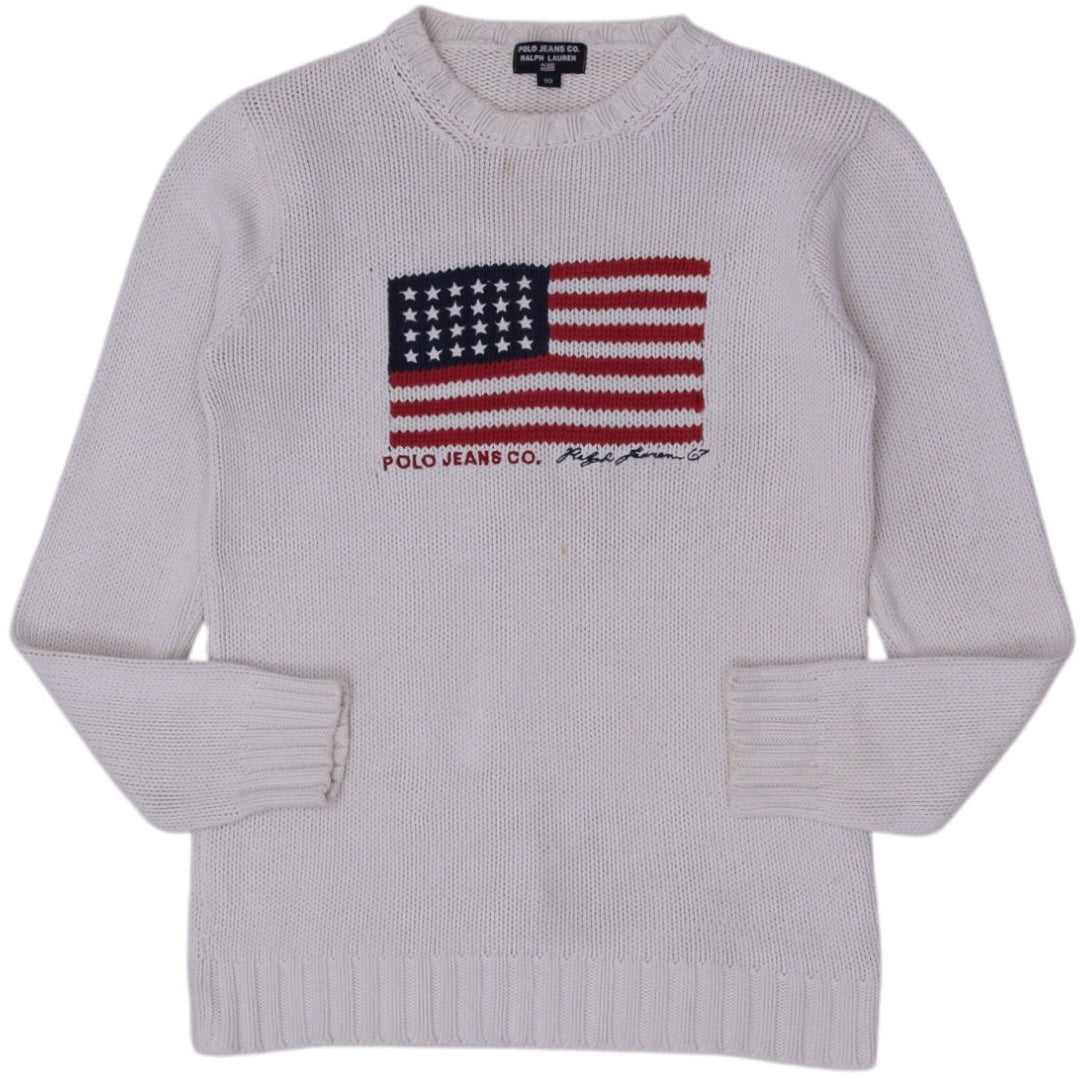 Vintage Polo Sport Ralph Lauren Flag 100 Cotton Crewneck Sweater Cream L