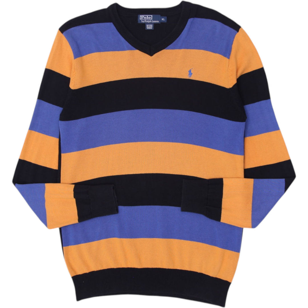 Vintage Polo By Ralph Lauren Striped 100% Wool Crewneck Sweater